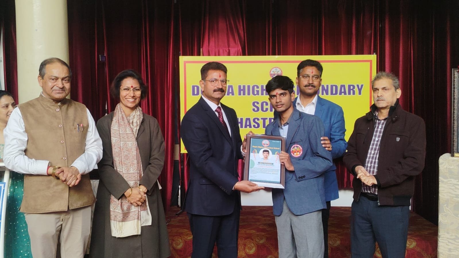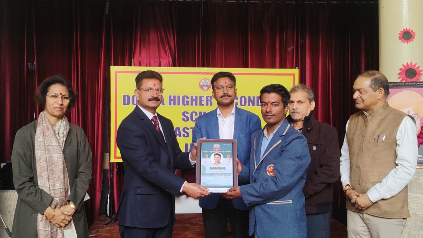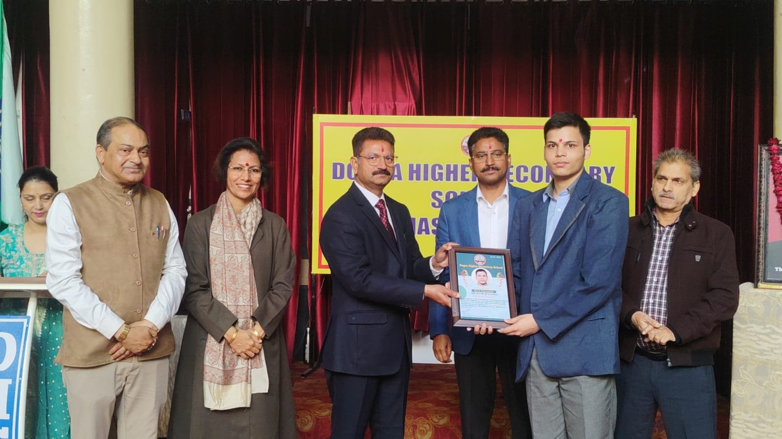 A Legacy of Academic Excellence! Jammu in a momentous celebration of scholastic supremacy, Dogra Higher Secondary School (DHSS) orchestrated a prestigious felicitation ceremony today, conferring honors upon 06 prodigious students for scoring high percentile in competitive JEE Mains and NEET examinations. This landmark event reaffirms DHSS's stature as a vanguard in educational leadership, nurturing tomorrow's innovators through unwavering dedication to academic rigor and holistic development of student.